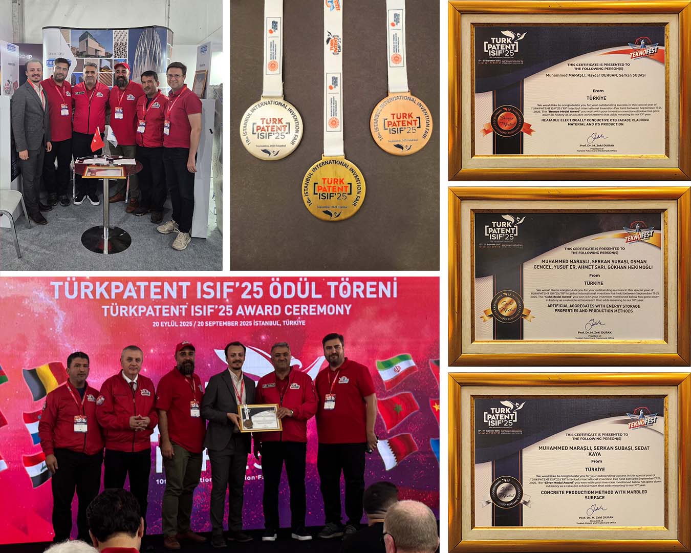 At ISIF’25, Fibrobeton was awarded a Gold Medal with its patent Artificial Aggregates with Energy Storage Properties and Production Methods, a Silver Medal with its patent Concrete Production Method with Ebru Surface, and a Bronze Medal with its patent Heatable Electrically Conductive CTB Facade Cladding Material and Production Methods. These awards demonstrated the company’s strong commitment to R&D and innovation, which has been recognized on an international scale.